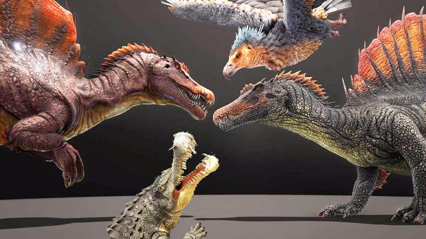 方舟生存进化恐龙大战64 霸王龙羽暴龙和牛龙对战棘背龙 谁能赢 哔哩哔哩 つロ干杯 Bilibili